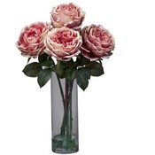 Nearly Natural Fancy Rose Silk Flower Arrangement with Cylinder Vase Pink