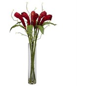 The beautiful Ginger Torch silk flower arrangement presents a design that would not seem out of place for an Emperor's table. These lovely oriental stems stand tall in their cylindrical torch style vase, accenting the long, thin stems and the curvy leaves of this beautiful flower. This is one exceptional artificial floral that cannot be passed up, and a must own for any true botanical enthusiast. Features: -Graceful, delicate and exotic. -Authentic feel with it's texture and color. -Perfect tropical beauty for any space.